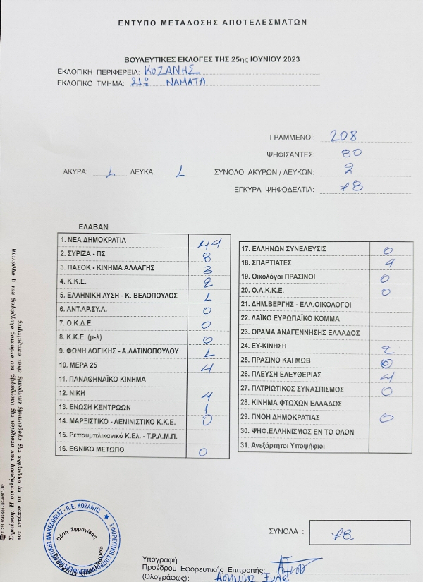 Αποτελέσματα Εθνικών Εκλογών 25/6/2023.
