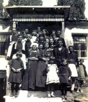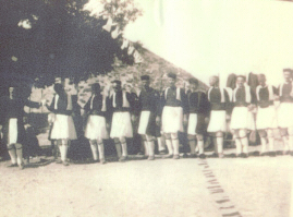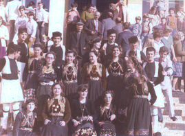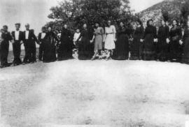 | Η οικογένεια Δαλαπάσχου από τη Βλάστη και τα Νάματα Νάματα 1934, γάμος του Θανάση Δαλαπάσχου και της Καλλιρρόης το γένος Αποστόλη (Τότση) Γκάτσου. Αρχείο Δημητρίου Παράσχου. Μπροστά ο γαμπρός με τα τσιπούνια και η νύφη με το λευκό πέπλο και τα τέλια (κλωστές ασημένιες που ρίχνανε πάνω από το πέπλο). Πίσω με τα μουστάκια και το τσιπούνι ο πατέρας του γαμπρού Κωνσταντούλης Δαλαπάσχος και δίπλα του η μάννα του γαμπρού, η «Κωνσταντούλινα», Σουλτάνα Δαλαπάσχου το γένος Μπασδάρα από τη Βλάστη. |